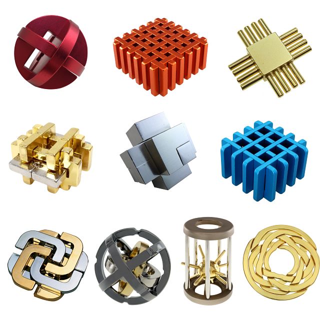 • Premium metal build — Each puzzle is crafted in anodized or precision-machined metal, offering a satisfying tactile feel and durability.