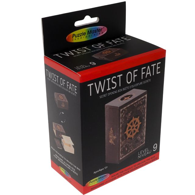 With a ship’s wheel embedded on top, Twist of Fate invites you to take the helm—if you can figure out how. This elegant wooden puzzle box hides a layered locking mechanism beneath its nautical design, and unlocking it will be a challenge.